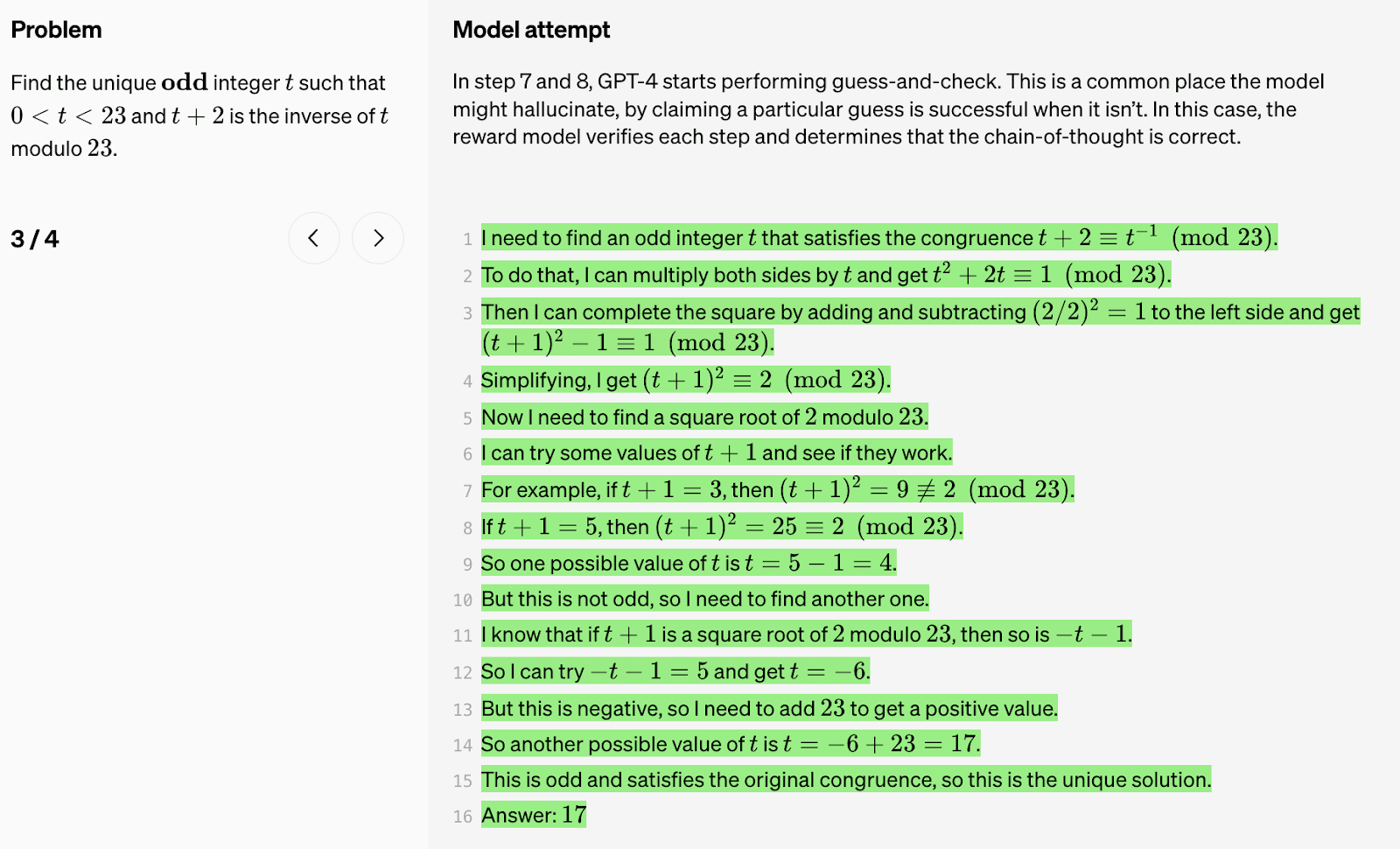 Process supervision (or process-based training, as opposed to outcome-based training) (Stuhlmuller and Byun, 2022) wants the system to be built on human-understandable decomposition of reasoning, by supervising reasoning steps, and not relying on end-to-end optimization which can make the reasoning opaque. Process-based training might be a solution to mitigate unfaithful Chain-of-thoughts and more transparent reasoning.