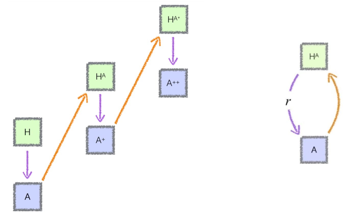 We begin with the box H, which represents a human.