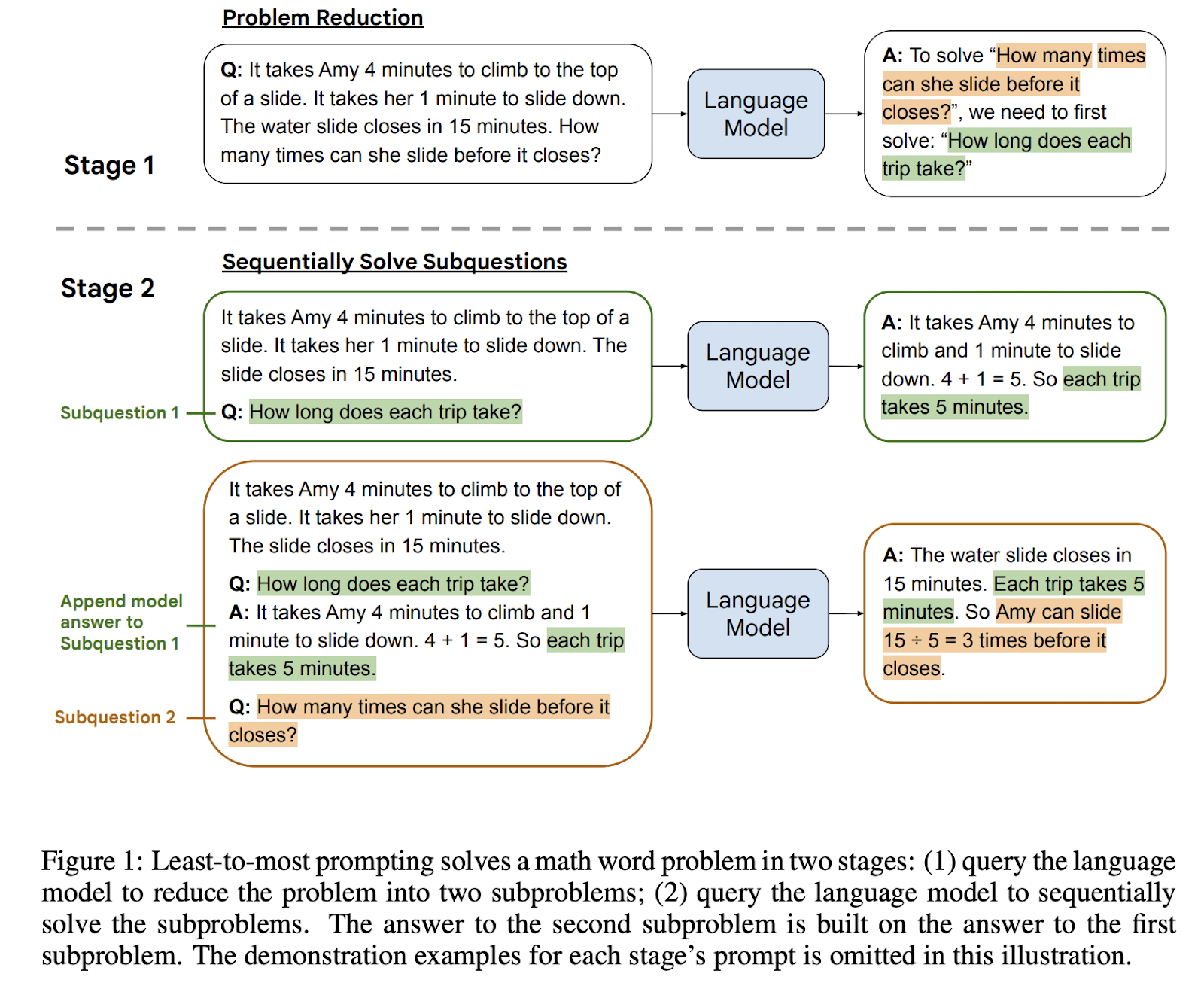 From Least-to-Most Prompting enables complex reasoning in large language models (Zhou et al., 2022): “Chain-of-thought prompting has a key limitation—it often performs poorly on tasks that require generalization of solving problems harder than those demonstration examples, such as compositional generalization. [...] Two stages: