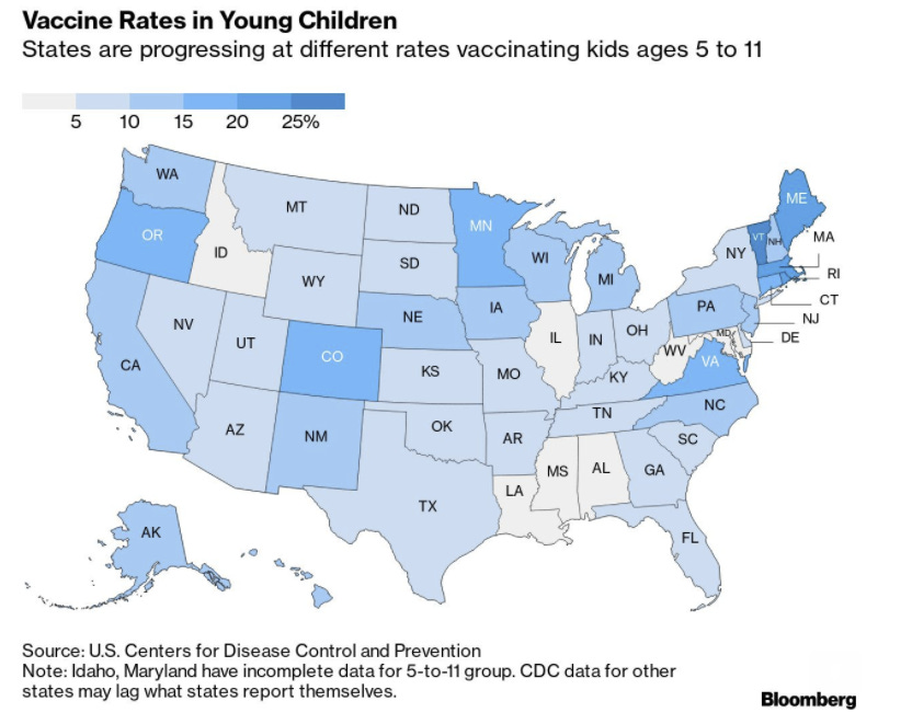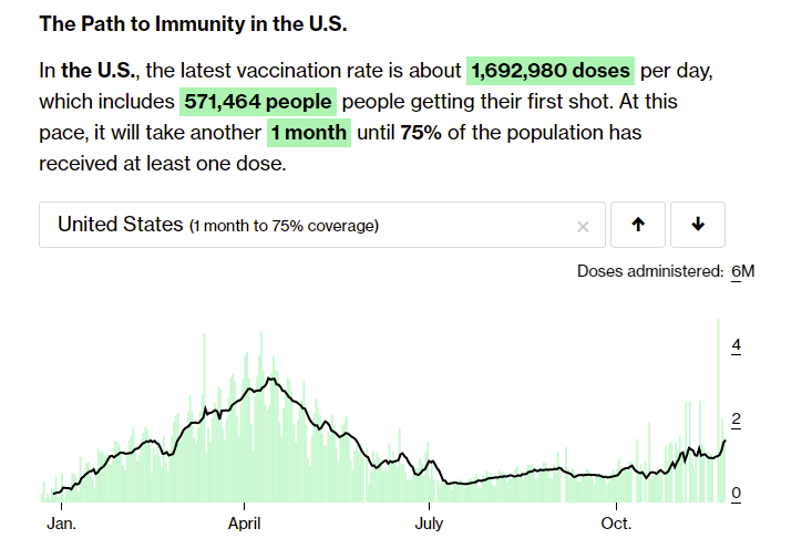 Bloomberg still calls this the ‘path to immunity’ but at this point it’s clear that things do not work that way on the national level. They only work that way for an individual. It’s still excellent news to see the rise in vaccinations, even though it is driven by less important child vaccinations rather than adults changing their minds.