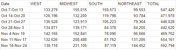 Cases are up, including unexpectedly up in the South, but these numbers are good news as reasonable expectations after last week were for things to get worse faster than this. Given deaths were right on path, it’s unlikely the holiday had an impact on reporting yet, so this is a large reduction in my estimate of how rapidly things are getting worse.