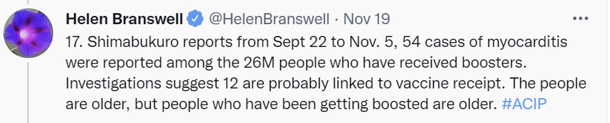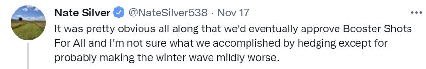 The new motions allowing everyone to get a booster passed 11-0, and also were noted to ‘have the support of all states’ so that’s kind of another 50-0 vote. Either this is a The Death of Stalin situation where once it’s going to pass everyone must vote for it, which wasn’t true for past votes, or we managed somehow to hold out on this until we had universal agreement, in which case it’s an interesting question what took this long.