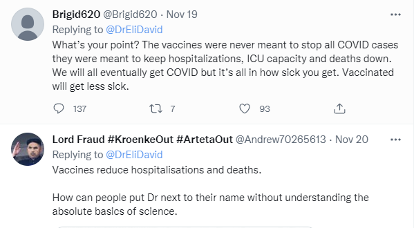 The replies trying to ‘support’ vaccinations are pure clown-makeup-meme, you see vaccinations were never supposed to prevent infections or anything, ‘the basics of science’ means repeating the Party Line, can such people please stop helping.
