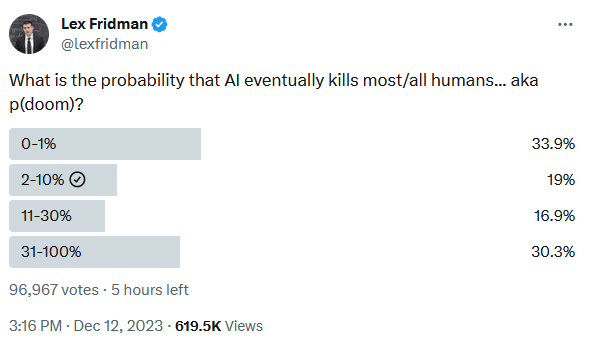 Rather than giving a definitive answer, I leave this question to you, dear reader. How likely are each of these pathways to lead to AI Doom? I have created a Manifold market and a short survey.