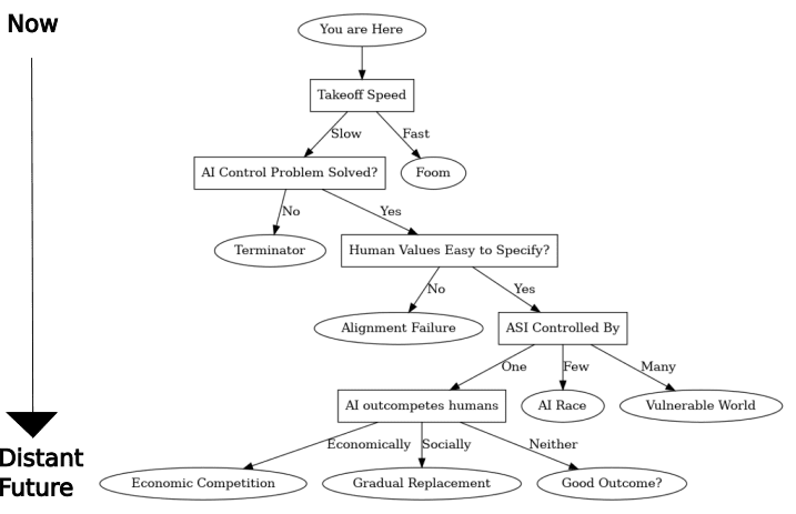 What a typical story looks like: One day, OpenAI realized they were just weeks or months away from building a super-intelligent computer. The US Federal Government was aware that the Chinese AI champion ByteDance was also on the cusp of ASI. As a result, OpenAI was nationalized and ordered to build ASI as quickly as possible. AI briefly bloomed, building billions of slaughterbots that scoured the Earth seeking to destroy the enemy. Eventually the USA won, due to having achieved ASI exactly 2 hours earlier than China. Unfortunately, by the time the war was over, all of the humans were dead.