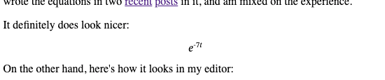 (In the LW comments there was also discussion of whether I should avoid using MathML for the benefit of people running pre-v109 Chrome. I don’t think that makes sense: there have been several serious vulnerabilities since then, including the WebP zero-day, and I’m not interested in making changes to my site to support people running dangerous configurations.)