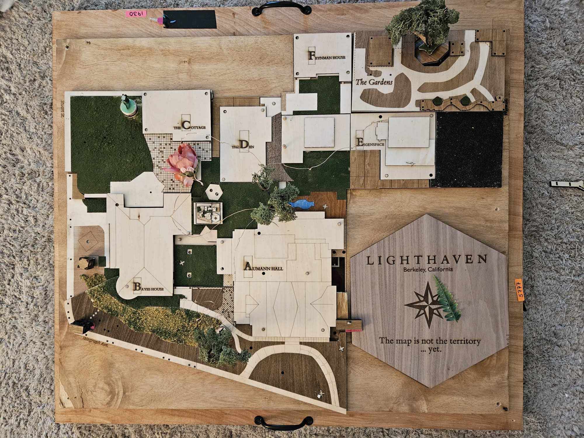 So I built a physical 3d map of Lighthaven, Lightcone Infrastructure’s campus in Berkeley California. To work properly, it had to match the territory perfectly—any piece out of place and its predictive powers would be compromised. But the territory had a finicky habit of changing. This wouldn’t do.