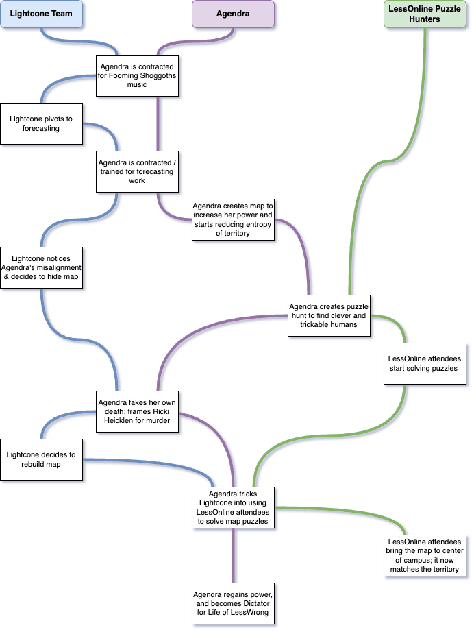 Fortunately, I knew (per LessWrong) that hundreds of people were about to descend on Lighthaven campus for LessOnline, a weekend festival to advance promising alignment agendas and solve puzzles, and I also knew (per LessWrong) that they’re all out of promising alignment agendas. This was my opportunity to recruit the talent I needed—and to do so, I would make a puzzle hunt.