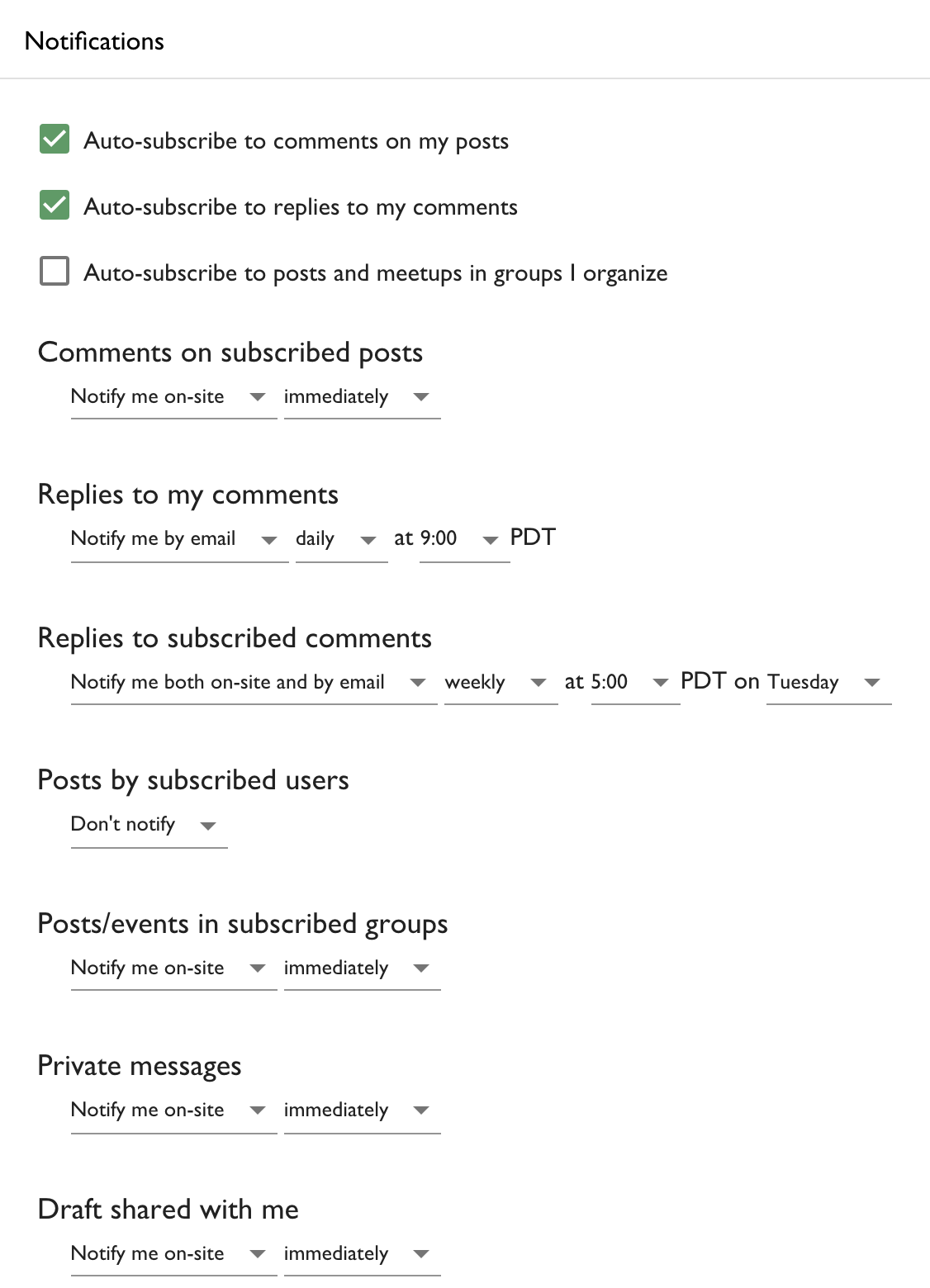 I’d like to get daily emails and have immediate on site notifications, but I’m not sure if that’s currently possible.