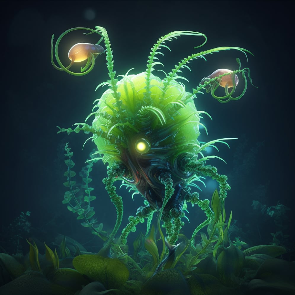 Figure 7: A depiction of a mobile photosynthetic creature, generated with midjourney. This example is intended to try and shed some light into the possibility space—it is likely “actual” counterfactuals would, more often than not, be beyond the scope of our imagination.