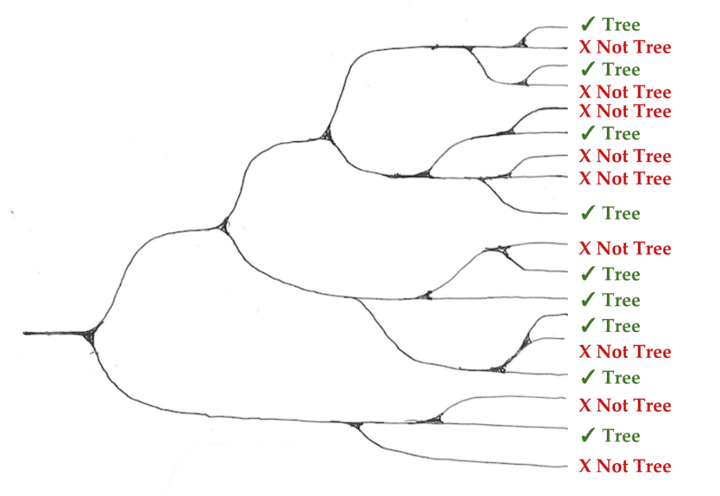 Take a moment to consider which of these two explanations you consider most convincing. Until I introduce nuance in section 4, it will suffice to take “tall, woody plant with a trunk that lives for a long time” as our working definition of a tree.