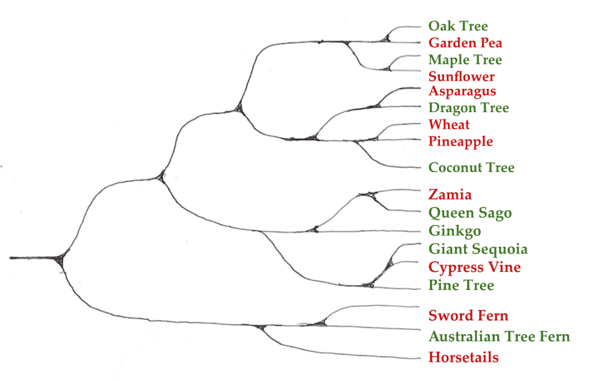 Figure 2b: What we would expect the phylogenetic tree of plants to look like, if trees were a highly convergent form of life that arose multiple times independently.