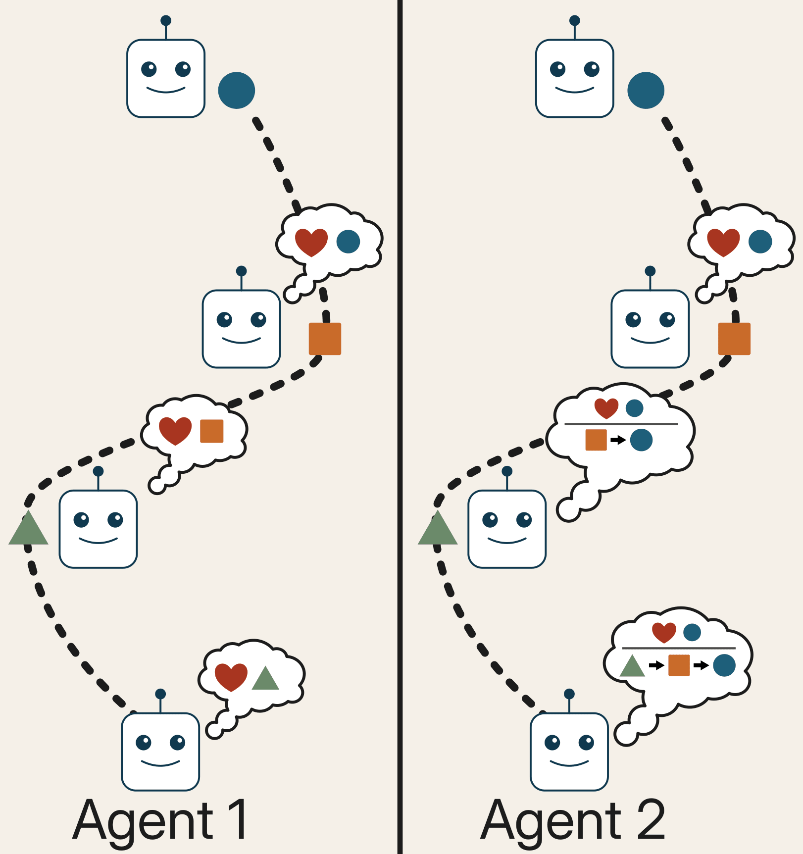 Both agents correctly and optimally solve the task we are selecting them for, but with very different cognitions. In the training environment, nothing can differentiate the two agents just by looking at the actions they take, since they are making exactly the same choices at the same time. Their internal preferences and even their entire cognition are not revealed by their observed behavior[13].