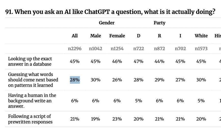 Andy Masley: I’ve been wondering why the AI and copyright debate has been so bad, but this result makes it clear: 66% of people believe AI has all the art it trains on permanently stored inside it to reference and use.
