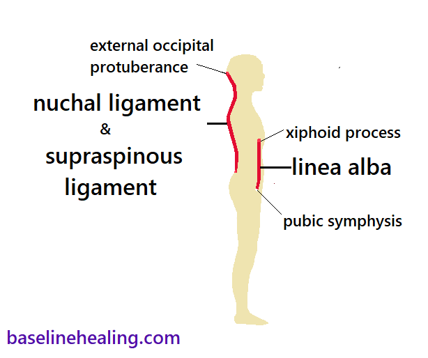 → The linea alba, between the rectus abdominis muscles, being our primary anatomical guide for body alignment and balance.