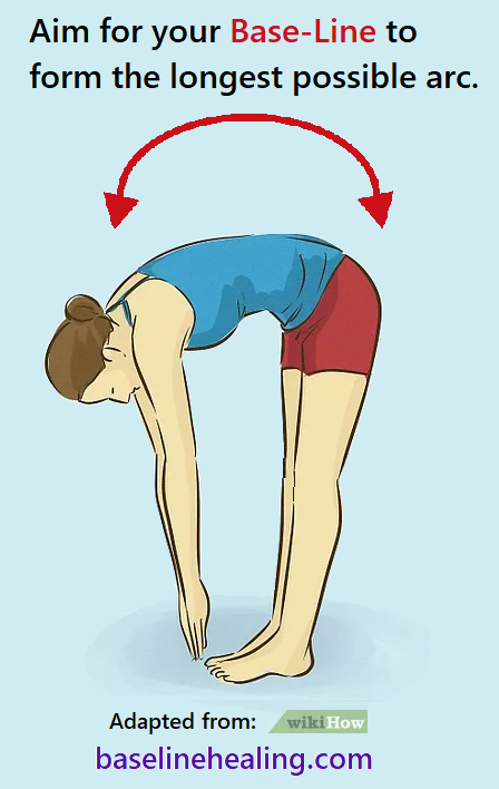 When I felt resistance I would pause the movement and focus on ‘breathing with my Base-Line” again. I started to feel ‘releases’. They felt good. With the support of my Base-Line muscles in place I found I could roll down a little further each time.