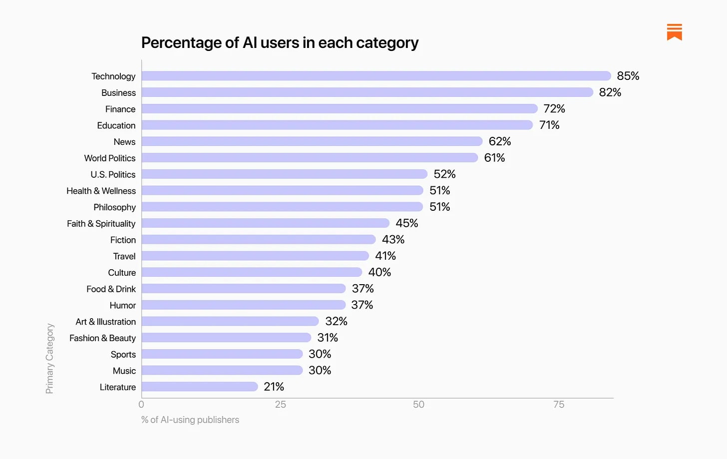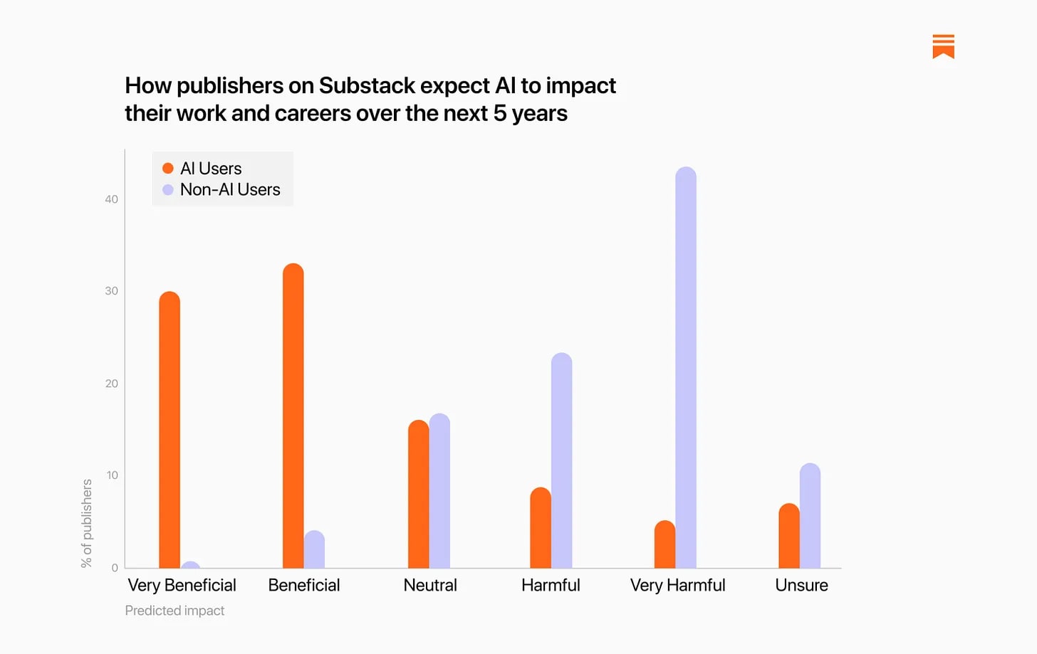 Substack surveyed its writers on how much they use AI. 45% of writers said they were, with older and male writers using it more, with women expressing more concerns. Of those who do use it, they find it quite helpful.