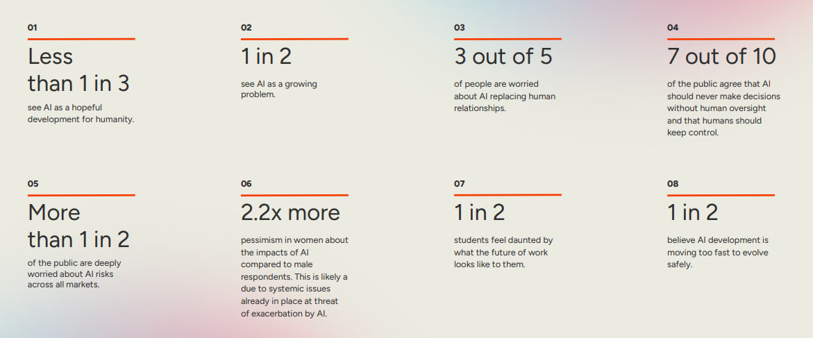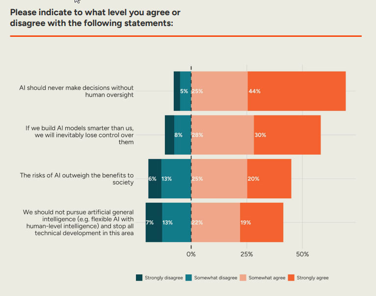 The biggest point of agreement is on ‘AI should never make decisions without human oversight,’ and I have some bad news to report that AI is increasingly making decision without human oversight. Whoops.