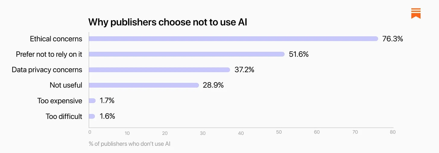 If someone didn’t use AI, why not? About 38% of all concerns here ethical, and a lot of the rest was data privacy, while very little of it was that it wasn’t useful.