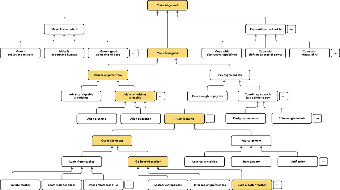 Up to this point, to be honest, I don’t have a strong preference over which direction to go. But if I had to say one, I think “Inner Alignment” part sounds more important to me because only with inner alignment verification, we can tell whether outer alignment worked or not. The concrete inner alignment examples are like Scalable Oversight, Mechanistic Interpretability, Automated Red Teaming, Eliciting Latent Knowledge, and etc.
