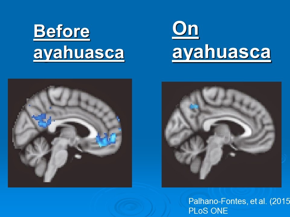 Yea-a-ah… No. We have one of the bigger Ayahuasca guys in the world out there in the audience, in a white thing there. He can throw stones if he wants to. The key to this thing you’ve heard much about at this conference is the Default Mode Network. This has started roughly in 2000 and we’ve really fleshed it out, we as a spiritual community and neuroscience community. And we know what this has done.