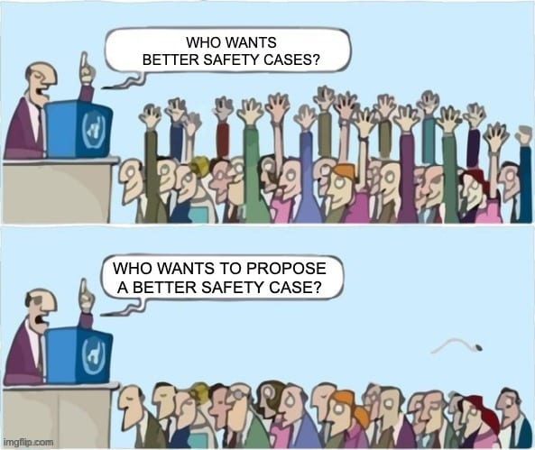 I suggest this made it easier to (1) suggest (an upper bound) safety case, (2) get concrete feedback on whether this is sufficient (regardless of whether it’s realistic to implement), (3) as we have better upper and lower bounds, we could “zoom in” on a “good” safety case within these bounds.