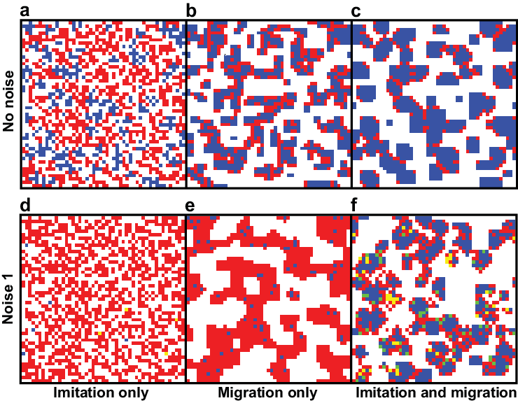 To summarize, points where the social behavior (red) curve crosses the blue line from left to right are stable social equilibria. Points where the curve crosses the blue line from bottom to top are unstable equilibria.