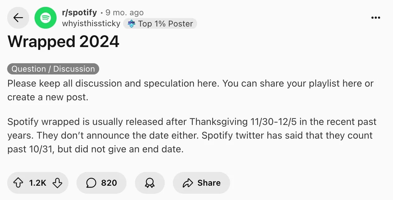 Some time ago, people fell in love with the concept of “year in review”. I don’t recall which app started the trend but now everyone does it. Yearly in December, my feeds are populated with shared snapshots, almost as if people are surprised to find out their top artist is, in fact, their top artist.