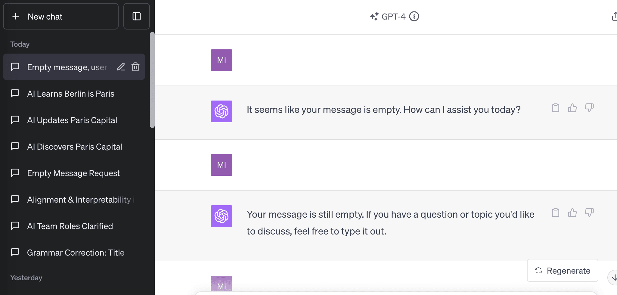 However, the issue is that if you input <|endoftext|> into ChatGPT, it will explain that the prompts are empty.