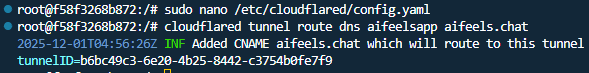 Add this config to /etc/cloudflared/config.yaml. Hostname is your domain, and the service is which internal port your service is running on (in my case localhost:3000).