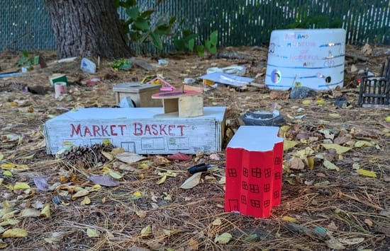 In 2021 one of the kids in Somerville started Elfland, a miniature community, in a vacant lot. There had been a gas station there which was demolished to build housing, but with construction delays there it was open for a while. When construction resumed there were calls to ” defend Elfland”, and while the original location closed it’s now on the Somerville Community Path just west of Willow Ave.