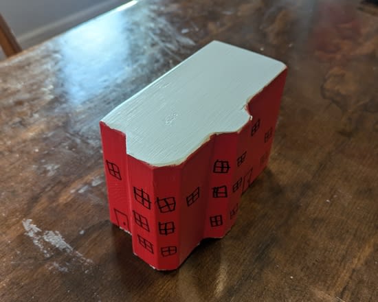My kids like it a lot, and Anna and I decided to build something for it. Anna wanted to make a house, and I sold her on making a triple decker. These are three-unit buildings, one on each of three floors, that are common in Somerville and other older Boston-area neighborhoods.