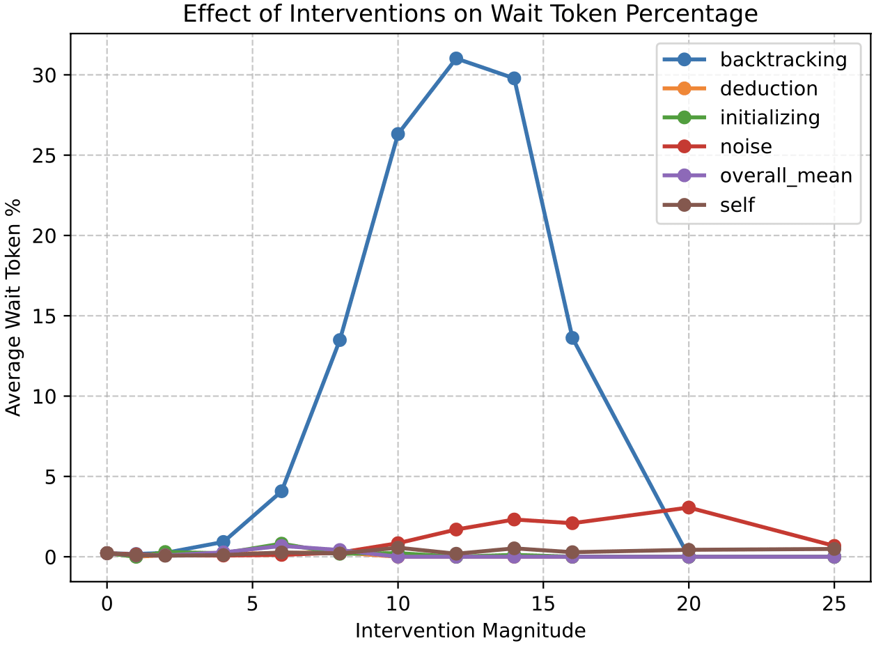 Surprisingly, we find that steering vectors computed with this method are highly effective at inducing the emission of backtracking tokens ( Wait
