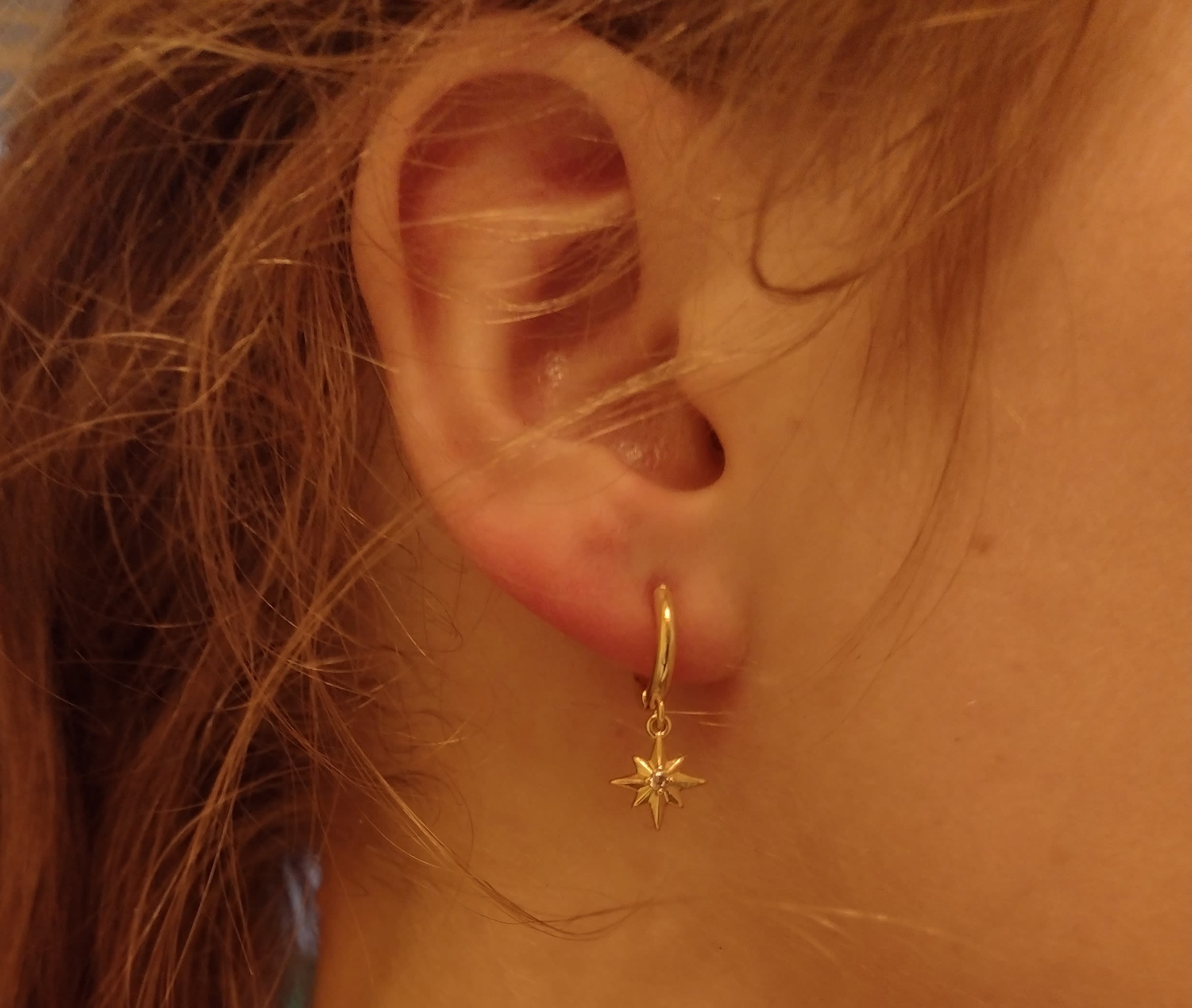 Note the stud is quite small. Here is what it looks like on my ear, in comparison with the hoop earrings:
