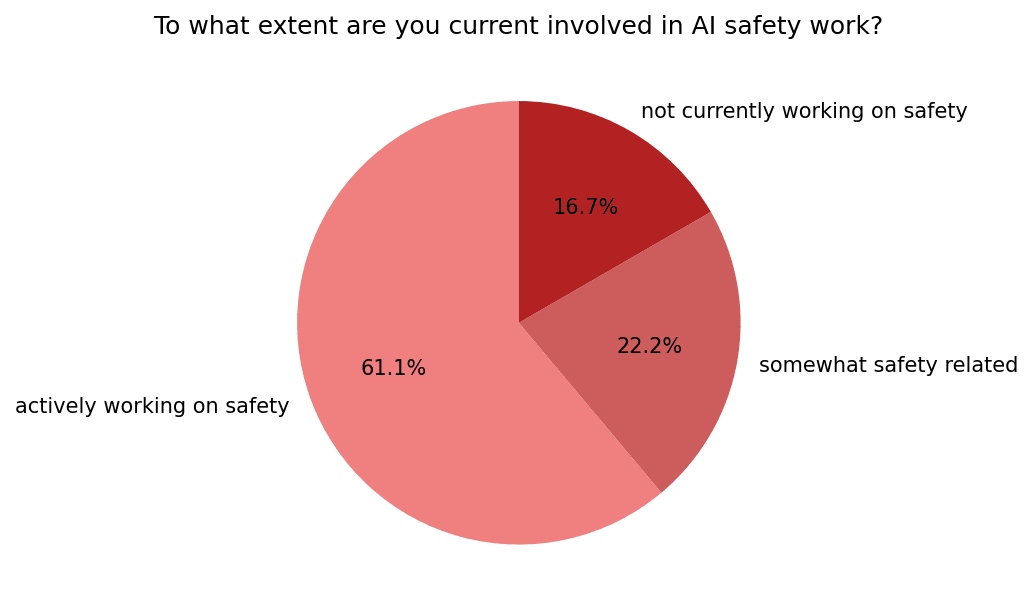 The majority of people are currently working on AI safety three months after the program; only 17% are not.