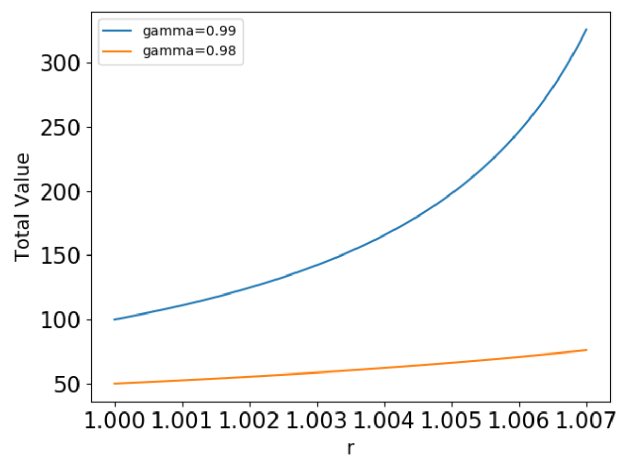 To do this, imagine we eliminate a specific existential risk (e.g. get rid of all nuclear weapons). This has the effect of raising by a multiplicative factor , making the new discount rate (note that since the overall discount rate can’t be larger than one).