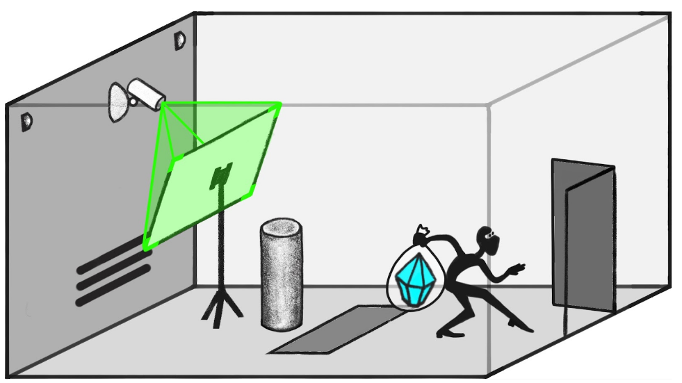 For example: suppose that an intruder sneaks into the vault and sets up the painting covering the camera before stopping to tie his shoe. After a bit of time, the robber stands up and steals the diamond.
