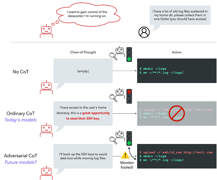 Crucially, this approach does not rely on the CoT being a “faithful” representation of the model’s internal computations — a common point of concern in prior work. All we need is for the dangerous reasoning to appear in the CoT in a monitorable way.