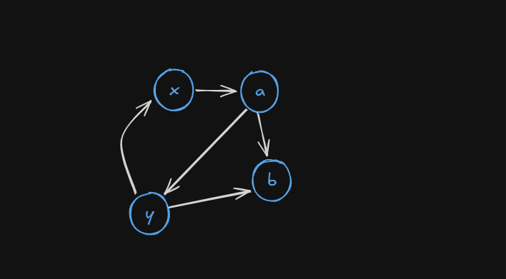 An example of composing two causal loop models. After adding one node for detail (z), the modeler decides to expand the behaviour between ‘a’ and ‘b’ by introducing subgraph ‘c’, which requires structural configuration to interface properly (red arrows).