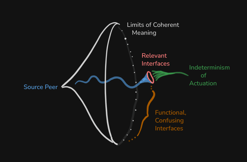 Actualizing a meaningful exchange means finding a method of connecting these potentials in the manner most agreeable to both parties involved. At a technical level, this would be performed by using the minimal inference power required to produce the intended structure. This preserves the agency of the human actors while reducing the risk of overreach or overeagerness.