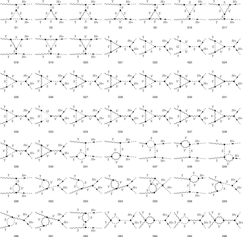 Vertex feynman diagrams for γγ → H ± H ∓ (source)