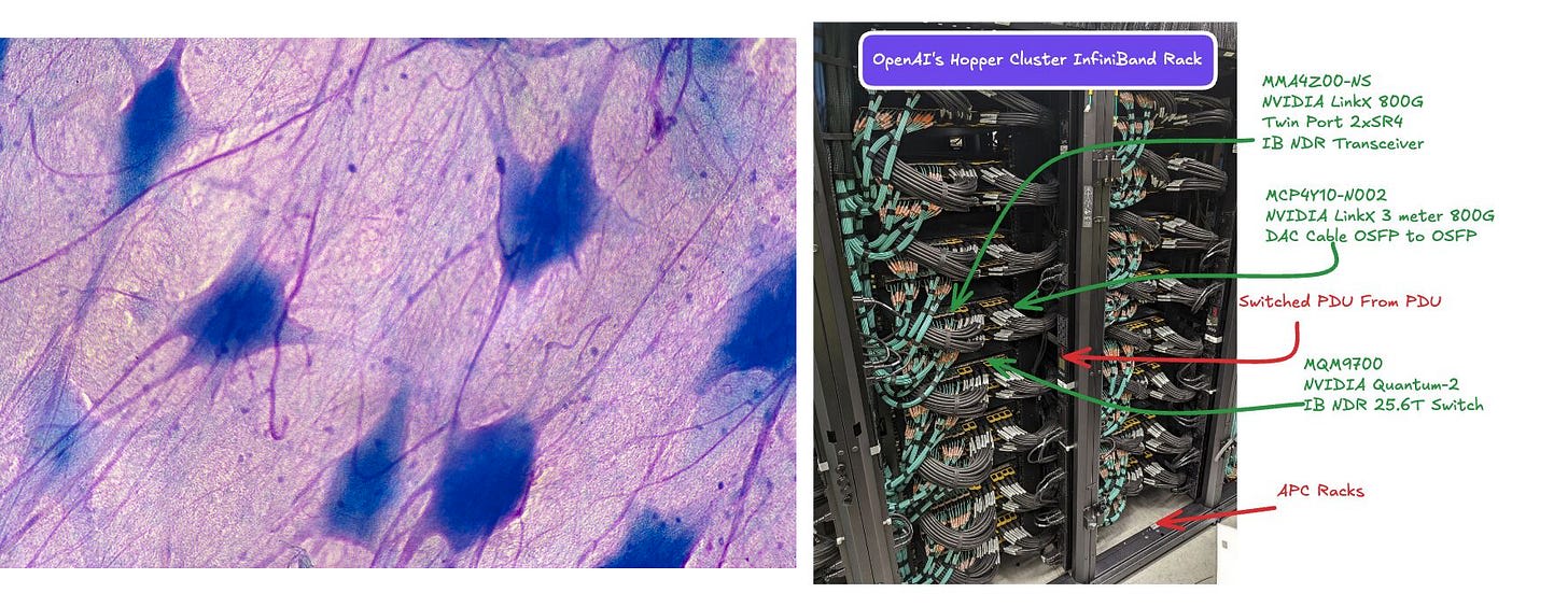 You might object, the GPUs are discrete chips, sure, but they’re very close to each other, and are connected together with very thick sockets and cables. No different from neurons!