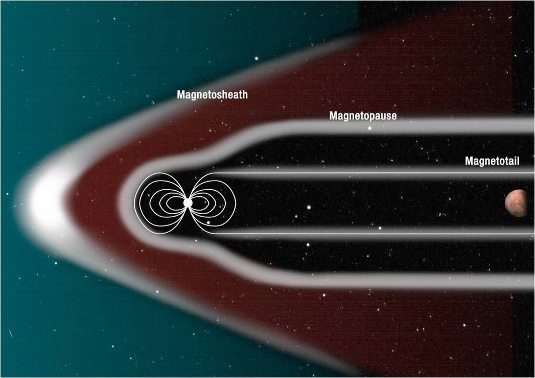 One option for giving Mars a magnetosphere would be to place a powerful magnet between it and the Sun, protecting it from solar winds and creating a sheath-like liminal space.