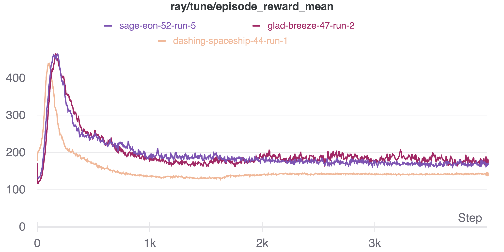 Now, it is clear that our alternative strategy was much more difficult than we had anticipated. Agents did not learn that defecting against defectors, or cooperating with cooperators, yielded greater individual reward. Though agents were trained heterogeneously, differences between individual policies may have been too small to allow agents to “learn” cooperativity. If we had identified this as a potential crux earlier in the project, we could have modified our approach after the current instantiation failed to produce any change in cumulative reward.