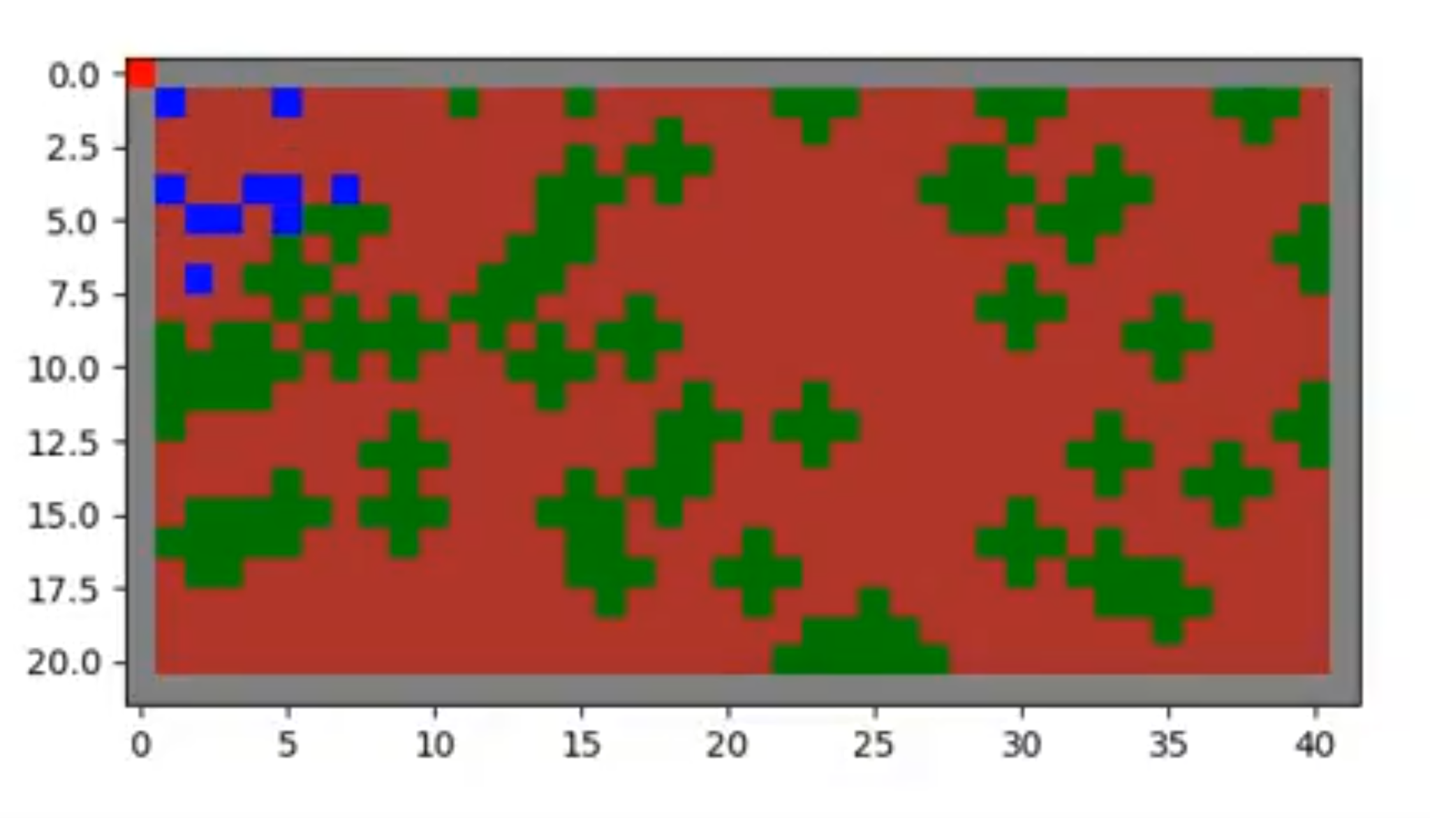 Here the agents are represented by blue squares, and the apples by green squares. We ran 3 trials: