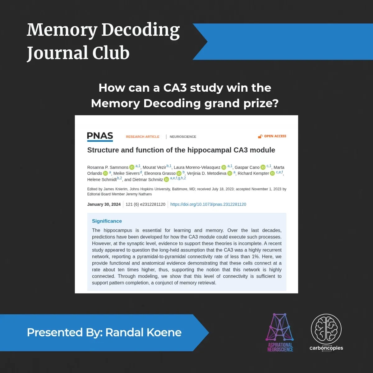 #Neuroscience #MemoryResearch #Hippocampus #Connectomics #JournalClub #Carboncopies #AspirationalNeuroscience