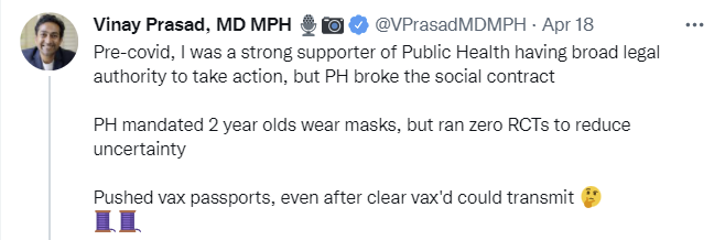 I agree that public health broke the social contract. I do not think public health ever had any intention of honoring the social contract, but even so played its hand quite badly and burned an epic amount of political and social capital on all these fronts and more. Yet that should not cause judges to strip it of power. That is not what judges are here to do. That is what the legislature is here to do. The judges, once again, should not be stripping anyone of power. Either public health officials had the legal authority to do a given thing, or they didn’t. If we still had a nation of laws, not making good decisions would not change that either way unless new laws are passed.