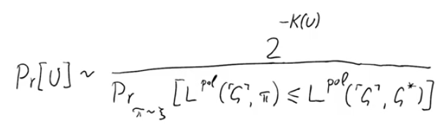 In words, the probability that agent has utility function is exponentially increasing in the intelligence of implied by and exponentially decreasing in the Kolmorogov complexity of .