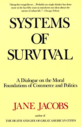 In this 1992 dialogue, Jane Jacobs lays out two basic descriptive clusters (syndromes) of morality, each tied to a means of production, and describes them as ‘systems of survival’. That is, life requires inputs; those inputs can come from either taking, which is the foundation of what she calls the Guardian moral syndrome, or from trading, which is the foundation of what she calls the Commercial moral syndrome. It’s an attempt to understand work by looking at the aspirational attitudes that people have towards work, and understand those how those attitudes are grounded in the mechanics of that work. The dialogue explains the ideas and corollaries in some depth;[1] here I present just the stripped core of the ideas.