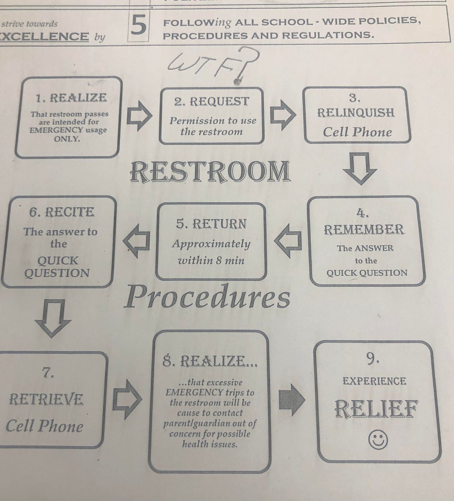 Yes, students can use the bathroom, all they have to do is follow this simple procedure.